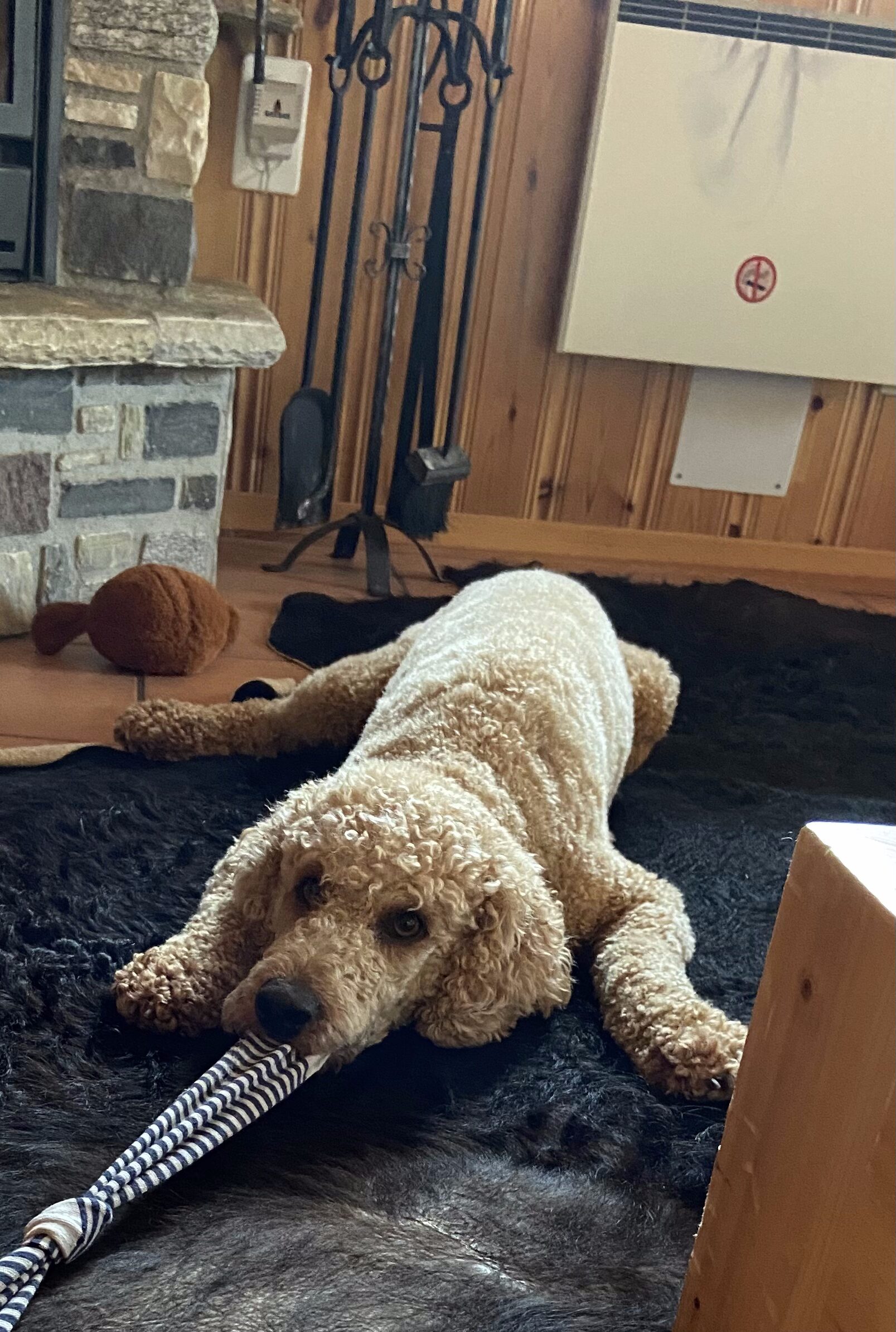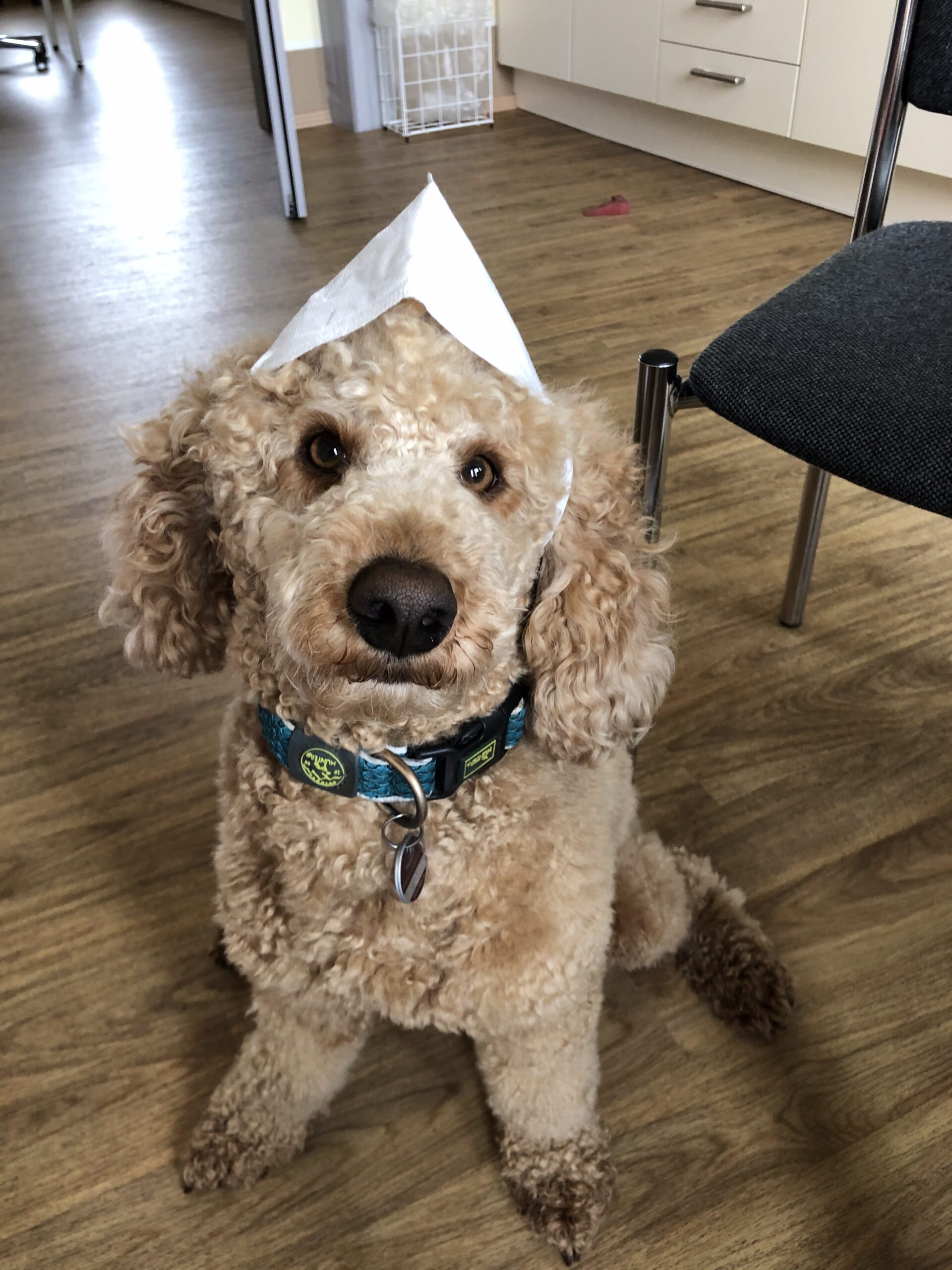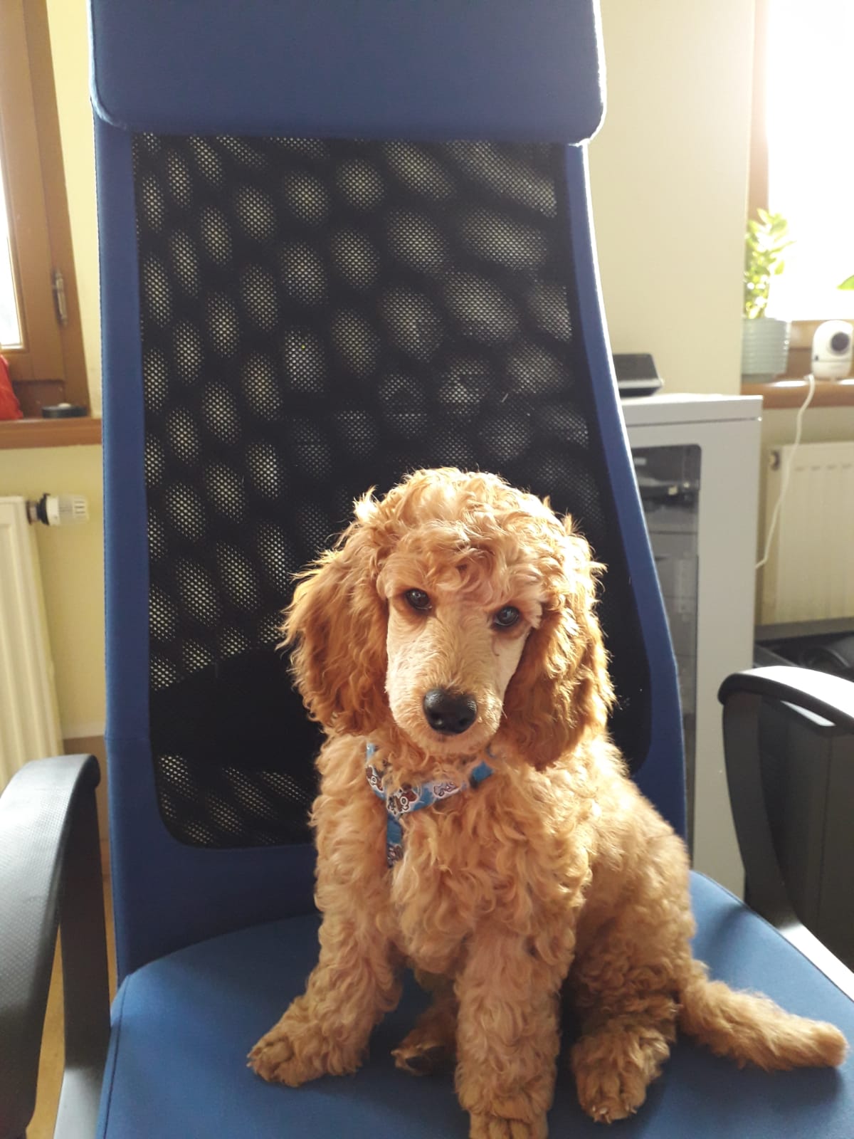 • Wenn sich der Hund auf seinem Platz unter dem Schreibtisch befindet, ist dies seine Ruhezone und er wird nicht angefasst.
